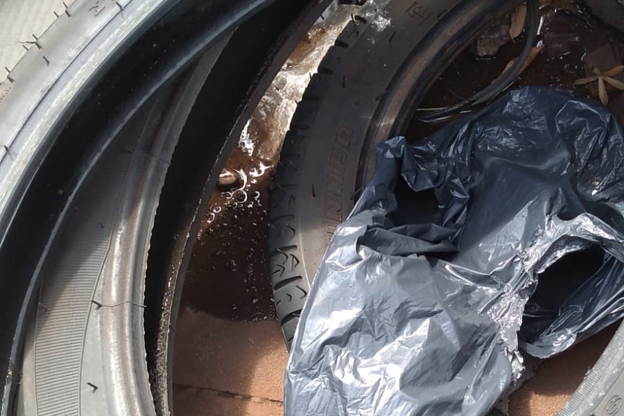 Outro problema recorrente apontado pela Vigilância é o descarte irregular de pneus, que continua sendo um grande desafio para o município. Pneus abandonados em terrenos baldios ou quintais acumulam água da chuva e se tornam criadouros ideais para o Aedes aegypti. A prática, além de irregular, representa um risco direto à saúde pública.